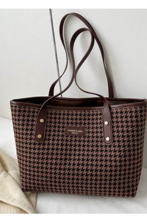 10 reviews for Houndstooth Shoulder Bag Winter Fashion Commuting Handbags WOmen Large Capacity Totes Casual Shopping Bag